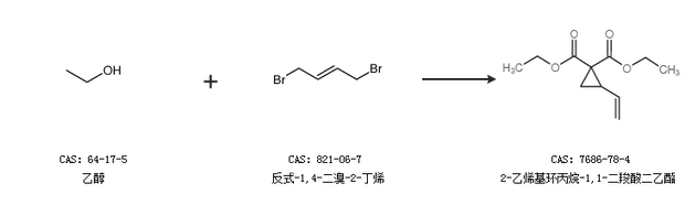 2.通过乙醇和反式-1,4-二溴-2-丁烯合成2-乙烯基环丙烷-1,1-二羧酸二乙酯