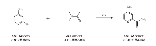 2.通过2-溴-4-甲基吡啶和N,N-二甲基乙酰胺合成2-乙酰-4-甲基吡啶,收率约57%;