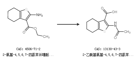 英文别名 2-(Acetylamino)-4,5,6,7-tetrahydro-1-benzothiophene-3-carboxylic acid;2-acetamido-4,5,6,7-tetrahydrobenzo[b]thiophene-3-carboxylic acid;2-acetylamino-3-carboxy-4,5-tetramethylenethiophene;2-Acetylamino-4,5,6,7-tetrahydrothionaphthen-3-carbonsaeure;2-Acetylamino-4,5,6,7-tetrahydro-benzo[b]thiophene-3-carboxylic acid;
