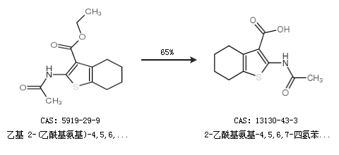 1.通过乙基 2-(乙酰基氨基)-4,5,6,7-四氢-1-苯并噻吩-3-羧酸合成2-乙酰基氨基-4,5,6,7-四氢苯并[b]噻吩-3-羧酸,收率约65%;