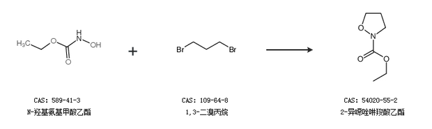 1.通过N-羟基氨基甲酸乙酯和1,3-二溴丙烷合成2-异噁唑啉羧酸乙酯,收率约97%;