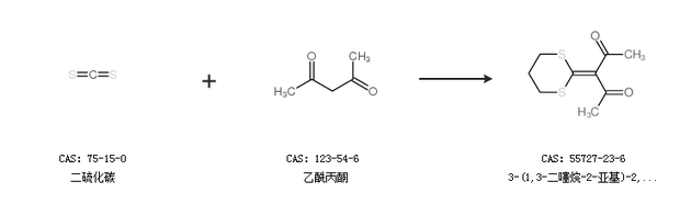1.通过二硫化碳、1,3-二溴丙烷和乙酰丙酮合成3-(1,3-二噻烷-2-亚基)-2,4-戊二酮,收率约99%;