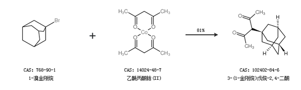1.通过1-溴金刚烷和乙酰丙酮钴(II)合成3-(1-金刚烷)戊烷-2,4-二酮,收率约81%;