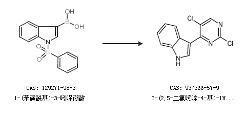 2.通过1-(苯磺酰基)-3-吲哚硼酸合成3-(2,5-二氯嘧啶-4-基)-1H-吲哚