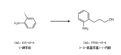 1.通过2-碘苯胺合成3-(2-氨基苯基)-1-丙醇