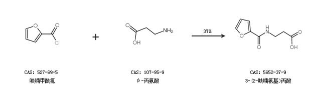 1.通过呋喃甲酰氯和β-丙氨酸合成3-(2-呋喃氨基)丙酸,收率约37%;