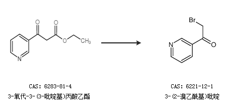 2.通过3-氧代-3-(3-吡啶基)丙酸乙酯合成3-(2-溴乙酰基)吡啶