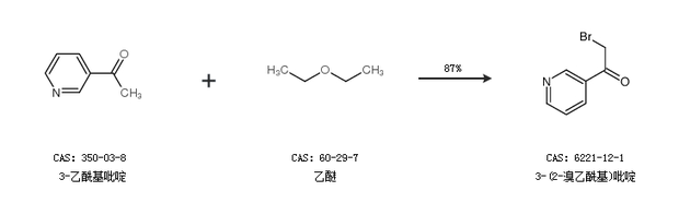 1.通过3-乙酰基吡啶和乙醚合成3-(2-溴乙酰基)吡啶,收率约87%;