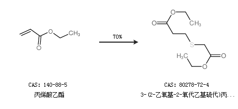 2.通过丙烯酸乙酯合成3-(2-乙氧基-2-氧代乙基硫代)丙酸乙酯,收率约70%;