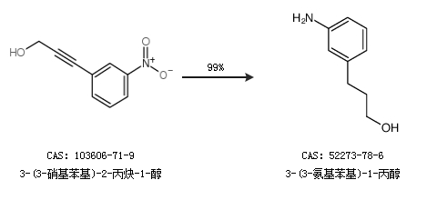 1.通过3-(3-硝基苯基)-2-丙炔-1-醇合成3-(3-氨基苯基)-1-丙醇,收率约99%;