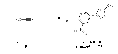 1.通过乙腈合成3-(3-硝基苯基)-5-甲基-1,2,4-恶二唑,收率约64%;
