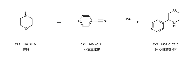 2.通过吗啉和4-氰基吡啶合成3-(4-吡啶)吗啉,收率约15%;
