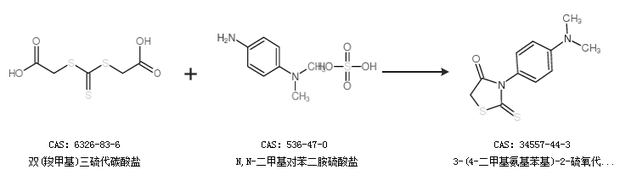1.通过双(羧甲基)三硫代碳酸盐和N,N-二甲基对苯二胺硫酸盐合成3-(4-二甲基氨基苯基)-2-硫氧代噻唑烷-4-酮