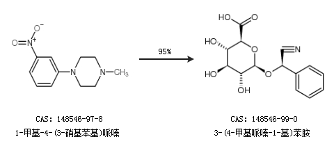 1.通过1-甲基-4-(3-硝基苯基)哌嗪合成3-(4-甲基哌嗪-1-基)苯胺,收率约95%;