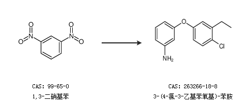 1.通过1,3-二硝基苯合成3-(4-氯-3-乙基苯氧基)-苯胺