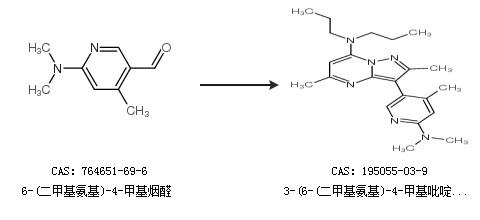 1.通过6-(二甲基氨基)-4-甲基烟醛合成3-(6-(二甲基氨基)-4-甲基吡啶-3-基)-2,5-二甲基-N,N-二丙基吡唑并[1,5-a]嘧啶-7-胺
