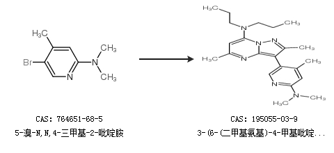 2.通过5-溴-N,N,4-三甲基-2-吡啶胺合成3-(6-(二甲基氨基)-4-甲基吡啶-3-基)-2,5-二甲基-N,N-二丙基吡唑并[1,5-a]嘧啶-7-胺
