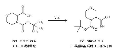 1.通过4-Boc-3-吗啉甲酸合成3-(氨基羰基)吗啉 4-羧酸叔丁酯,收率约91%;