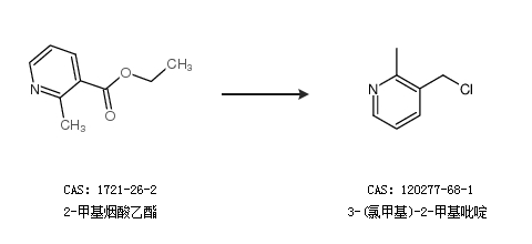 1.通过2-甲基烟酸乙酯合成3-(氯甲基)-2-甲基吡啶