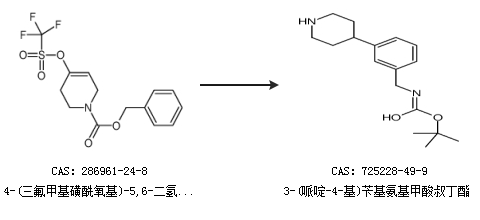 2.通过4-(三氟甲基磺酰氧基)-5,6-二氢吡啶-1(2H)-羧酸苄酯合成3-(哌啶-4-基)苄基氨基甲酸叔丁酯