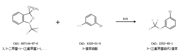 1.通过3,3-二甲基-1-(三氟甲基)-1,2-苯并碘氧杂戊环和3-溴苯硫酚合成3-(三氟甲基硫代)溴苯,收率约81%;