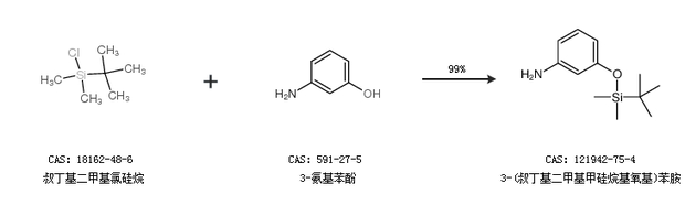 1.通过叔丁基二甲基氯硅烷和3-氨基苯酚合成3-(叔丁基二甲基甲硅烷基氧基)苯胺,收率约99%;
