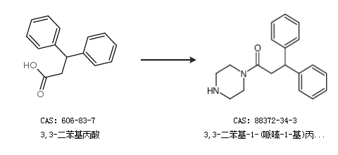 2.通过3,3-二苯基丙酸合成3,3-二苯基-1-(哌嗪-1-基)丙烷-1-酮