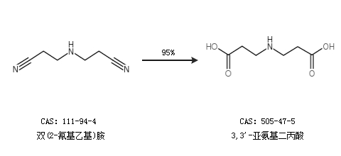 1.通过双(2-氰基乙基)胺合成3,3''-亚氨基二丙酸,收率约95%;