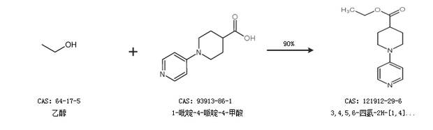 1.通过乙醇和1-吡啶-4-哌啶-4-甲酸合成3,4,5,6-四氢-2H-[1,4]双吡啶-4-羧酸乙酯,收率约90%;