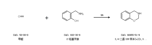 1.通过甲醛和2-羟基苄胺合成3,4-二氢-2H-苯并[e][1,3]噁嗪,收率约9%;