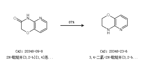 1.通过2H-吡啶并[3,2-b][1,4]恶嗪-3(4H)-酮合成3,4-二氢-2H-吡啶并[3,2-b]-1,4-噁嗪,收率约87%;