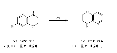 2.通过7-溴-3,4-二氢-2H-吡啶并[3,2-b]-1,4-噁嗪合成3,4-二氢-2H-吡啶并[3,2-b]-1,4-噁嗪,收率约14%;