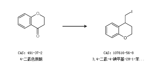 1.通过4-二氢色原酮合成3,4-二氢-4-碘甲基-2H-1-苯并吡喃