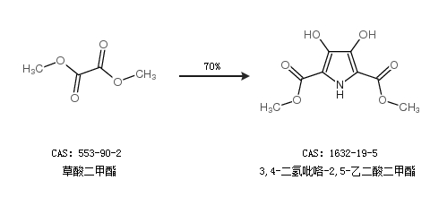 1.通过草酸二甲酯合成3,4-二氢吡咯-2,5-乙二酸二甲酯,收率约70%;