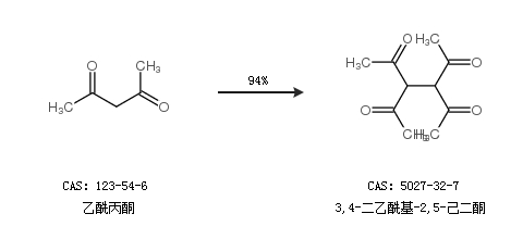 1.通过乙酰丙酮合成3,4-二乙酰基-2,5-己二酮,收率约94%;
