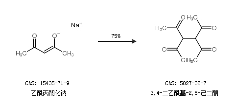 2.通过乙酰丙酮化钠合成3,4-二乙酰基-2,5-己二酮,收率约75%;