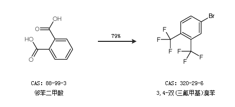2.通过邻苯二甲酸合成3,4-双(三氟甲基)溴苯,收率约79%;