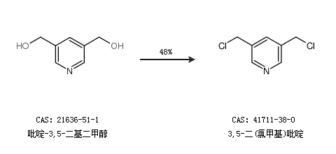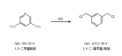 2.通过3,5-二甲基吡啶合成3,5-二(氯甲基)吡啶,收率约32%;