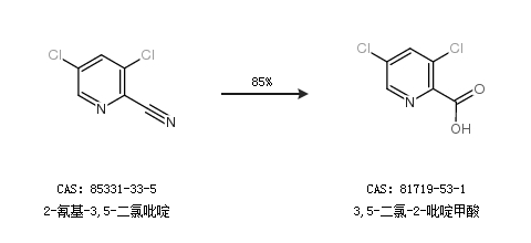 1.通过2-氰基-3,5-二氯吡啶合成3,5-二氯-2-吡啶甲酸,收率约85%;
