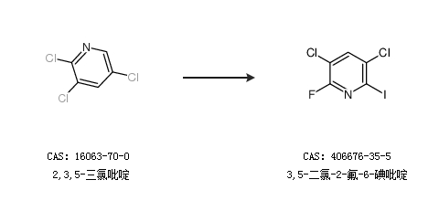 2.通过2,3,5-三氯吡啶合成3,5-二氯-2-氟-6-碘吡啶