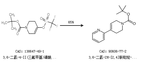1.通过3,6-二氢-4-[[(三氟甲基)磺酰]氧基]-1(2H)-吡啶甲酸叔丁酯合成3,6-二氢-2H-[2,4]联吡啶-1-羧酸叔丁基酯,收率约65%;