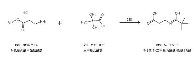 2.通过3-氨基丙酸甲酯盐酸盐和三甲基乙酰氯合成3-[(2,2-二甲基丙酰基)氨基]丙酸,收率约23%;