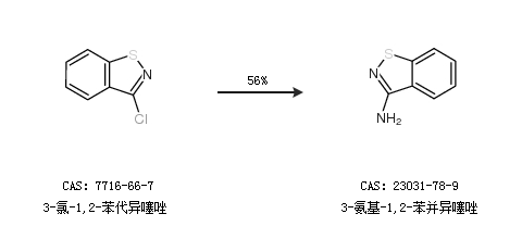 1.通过3-氯-1,2-苯代异噻唑合成3-氨基-1,2-苯并异噻唑,收率约56%;