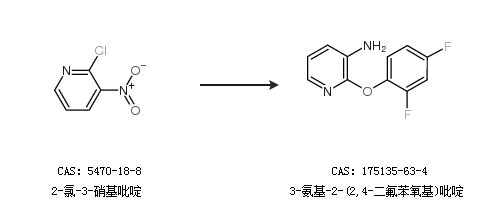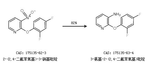 1.通过2-(2,4-二氟苯氧基)-3-硝基吡啶合成3-氨基-2-(2,4-二氟苯氧基)吡啶,收率约82%;
