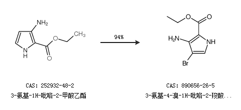 1.通过3-氨基-1H-吡咯-2-甲酸乙酯合成3-氨基-4-溴-1H-吡咯-2-羧酸乙酯,收率约94%;