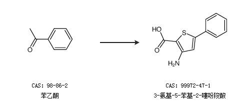 2.通过苯乙酮合成3-氨基-5-苯基-2-噻吩羧酸