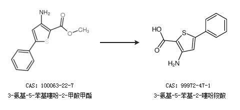 1.通过3-氨基-5-苯基噻吩-2-甲酸甲酯合成3-氨基-5-苯基-2-噻吩羧酸