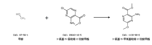 1.通过甲醇和3-氨基-5-氯吡嗪-2-羧酸甲酯合成3-氨基-5-甲氧基吡嗪-2-羧酸甲酯