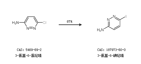 1.通过3-氨基-6-氯哒嗪合成3-氨基-6-碘哒嗪,收率约87%;