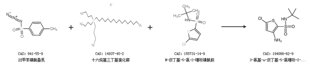 1.通过对甲苯磺酰叠氮、十六烷基三丁基溴化磷和N-叔丁基-5-氯-2-噻吩磺酰胺合成3-氨基-n-叔丁基-5-氯噻吩-2-磺酰胺